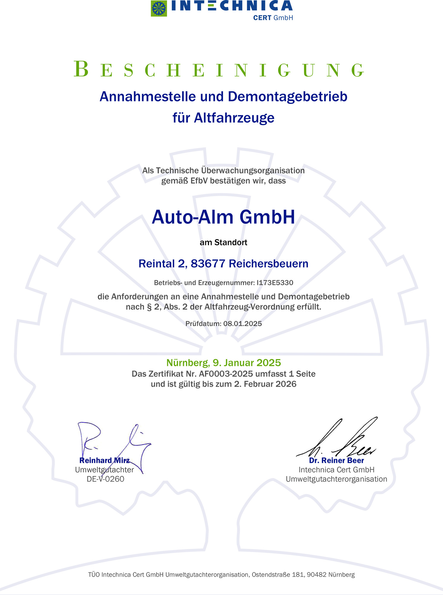 Die Fahrzeuge werden bei uns zerlegt und die Einzelteile der Recyclingindustrie